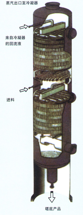 本裝置采用高效的金屬不銹鋼填料。蒸餾塔采用不銹鋼制,從而防止了鐵屑堵填料的現(xiàn)象,延長(zhǎng)了裝置的使用期限。本裝置中凡接觸酒精設(shè)備部分如冷凝器、穩(wěn)壓罐、冷卻蛇管等均采用不銹鋼,以確保成品酒精不被污染。蒸餾釜采用可拆工U型加熱管,在檢修時(shí)可將U型加熱管稱出釜外,便于對(duì)加熱管外壁及蒸餾釜壁進(jìn)行清洗。本裝置可間歇生產(chǎn),也可半連續(xù)生產(chǎn)。